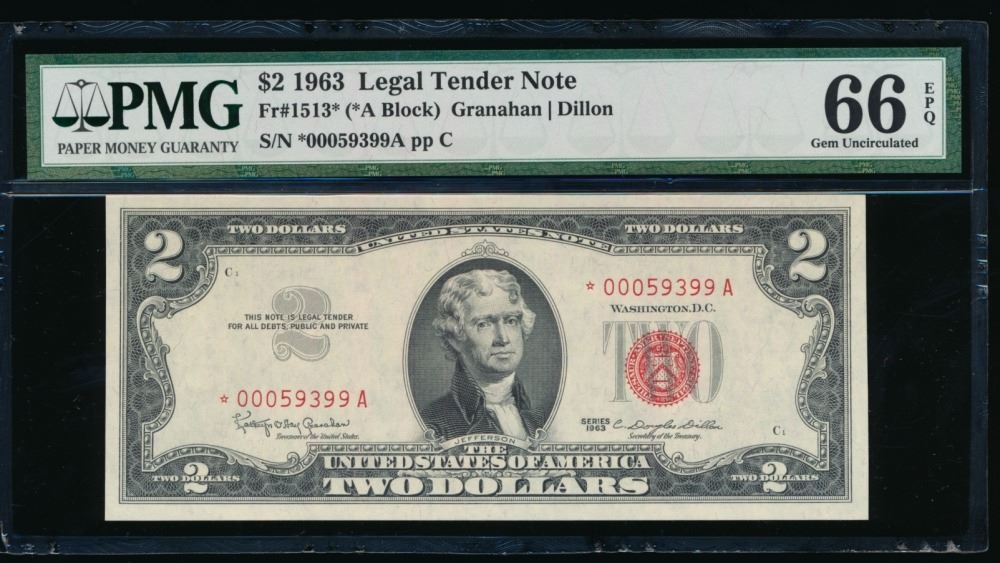 One 1963 $2 STAR Legal Tender Note PMG 66EPQ.