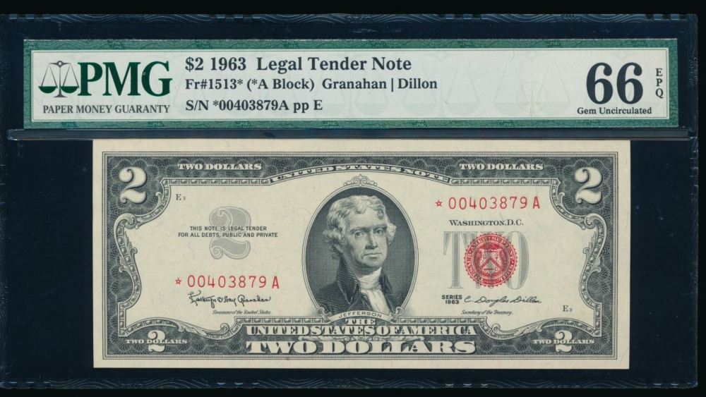 One 1963 $2 STAR Legal Tender Note PMG 66EPQ.