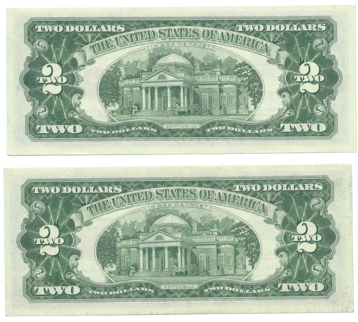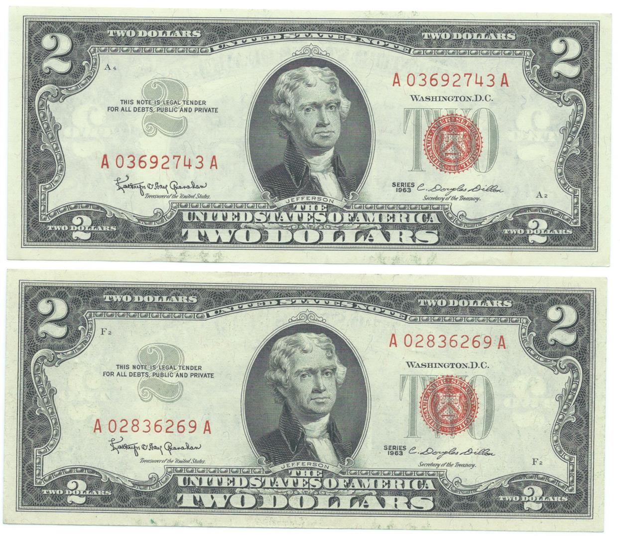 One 1963 $2 Uncirculated Red Seal Bill Lot of 2.