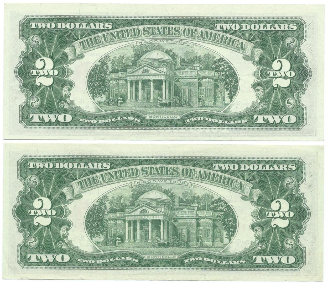 One 1963 $2 Uncirculated Red Seal Bill Lot of 2.