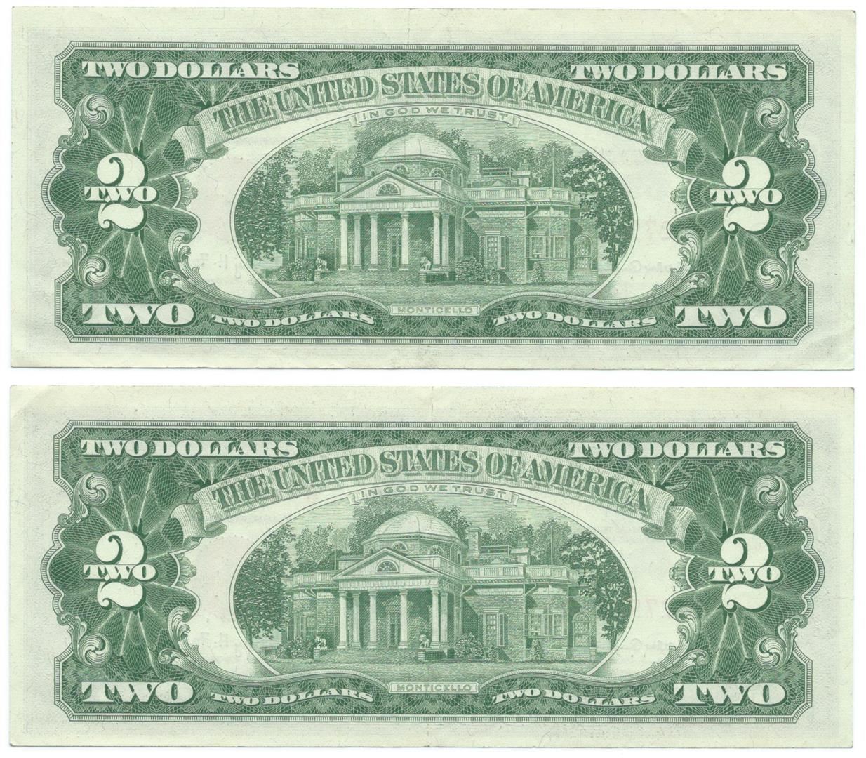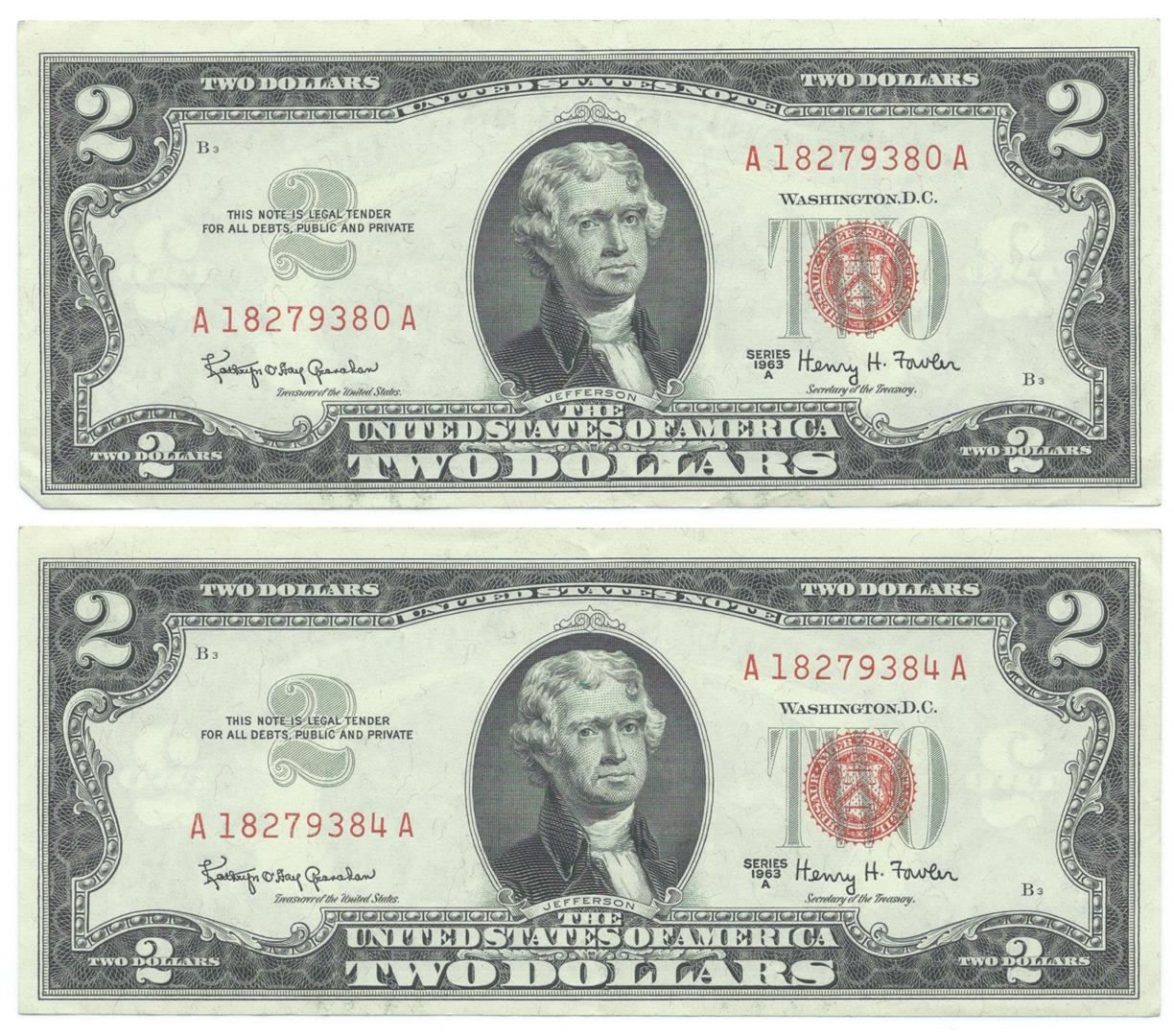 One 1963 $2 Uncirculated Red Seal Bill Lot of 2.