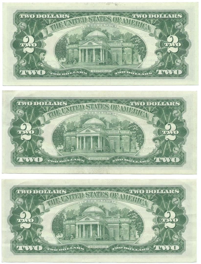 One 1963 $2 Uncirculated Red Seal Bill Lot of 3.