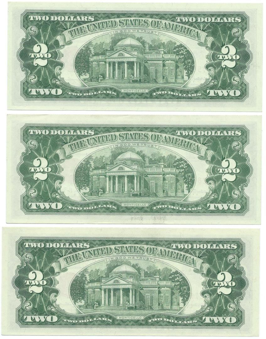 One 1963 $2 Uncirculated Red Seal Bill Lot of 3.