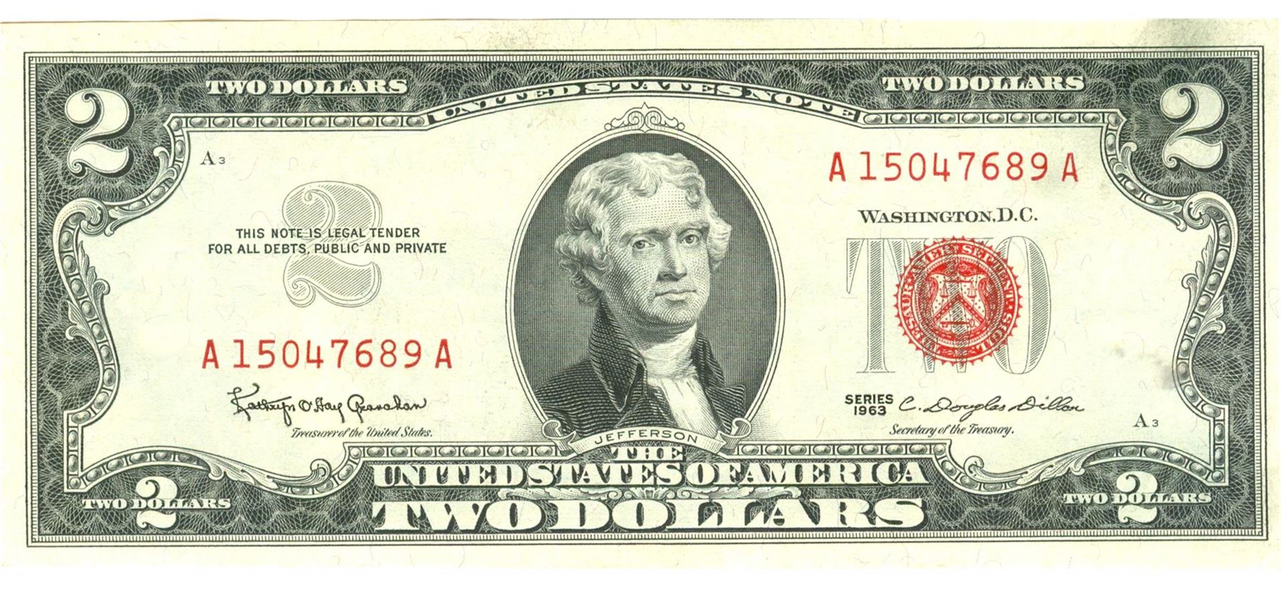 1963 $2 XF/AV Red Seal Note.