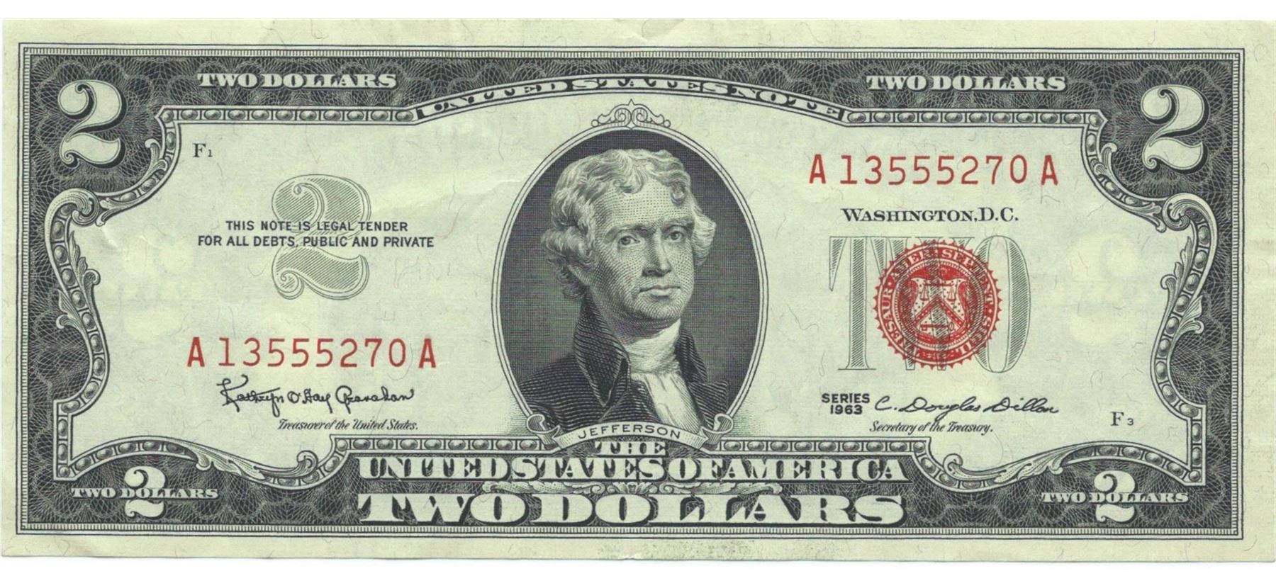 1963 $2 XF/AV Red Seal Note.