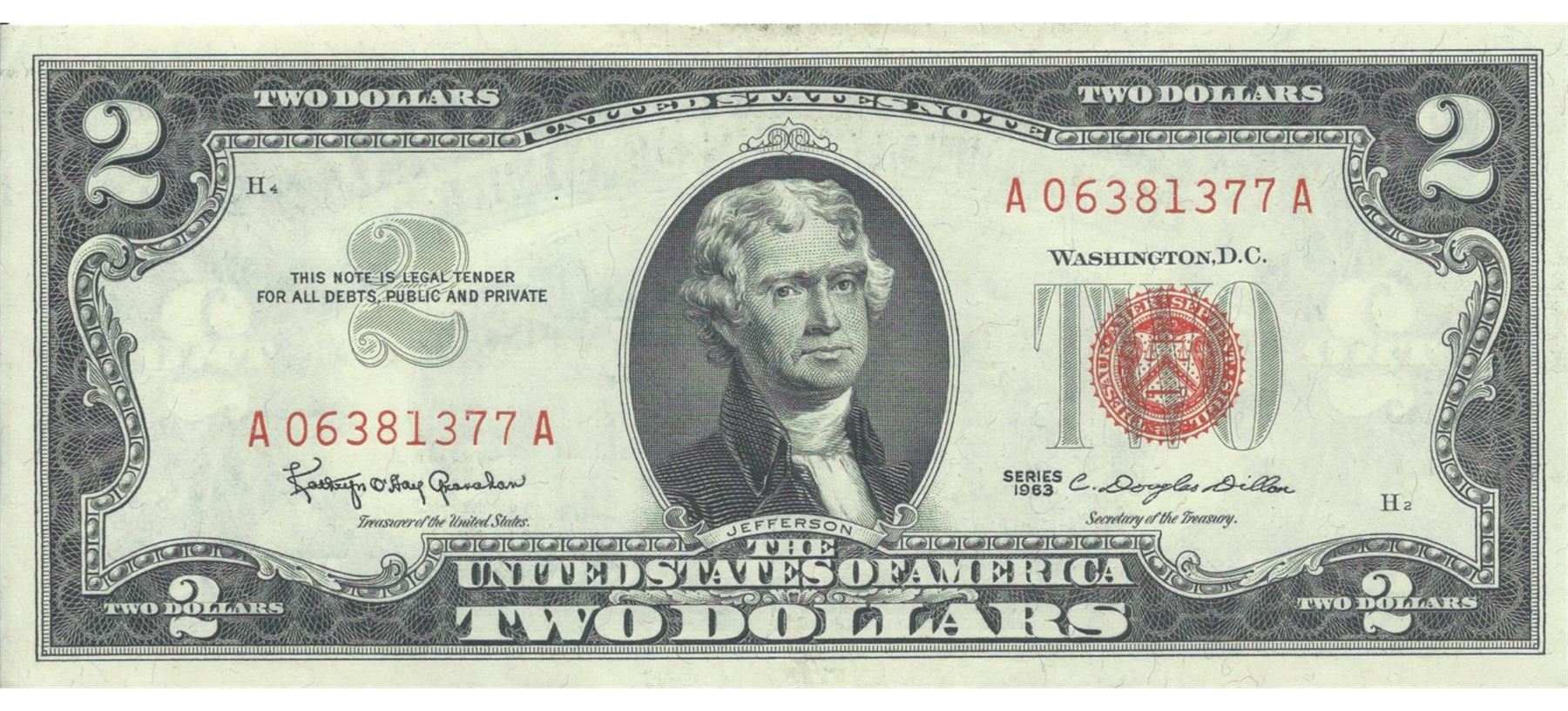 1963 $2 XF/AV Red Seal Note.