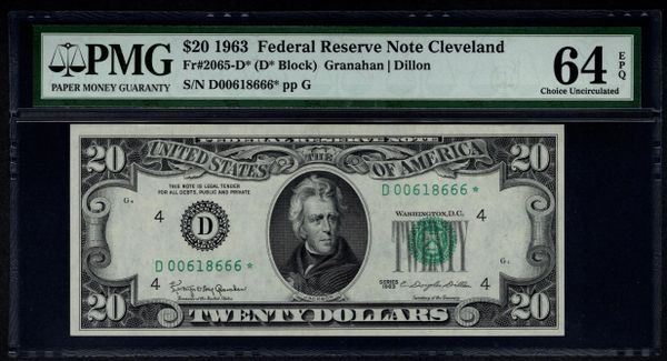 One 1963 $20 STAR Cleveland FRN PMG 64EPQ.
