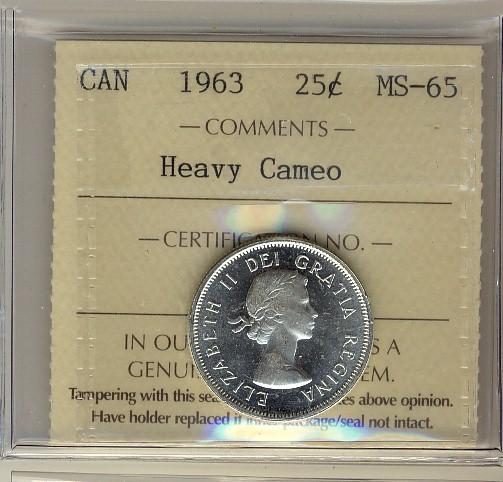 1963 25¢ ICCS MS65 Heavy Cameo