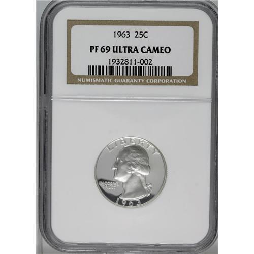 1963 25C PR69 Ultra Cameo NGC. Tied for the finest gra 1963[25C] PR69 Ultra Cameo NGC.