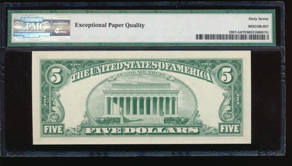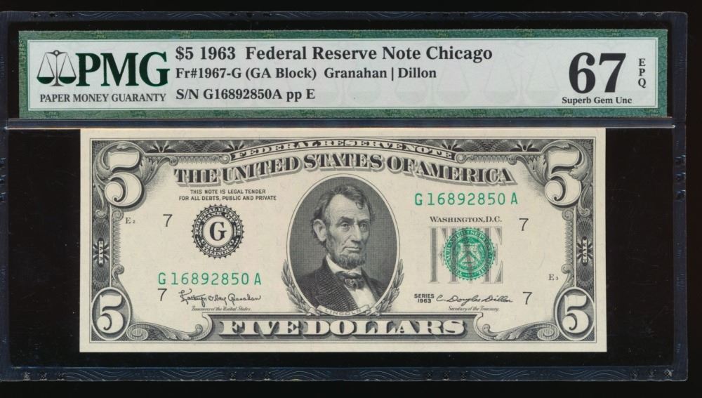 One 1963 $5 Chicago FRN PMG 67EPQ.