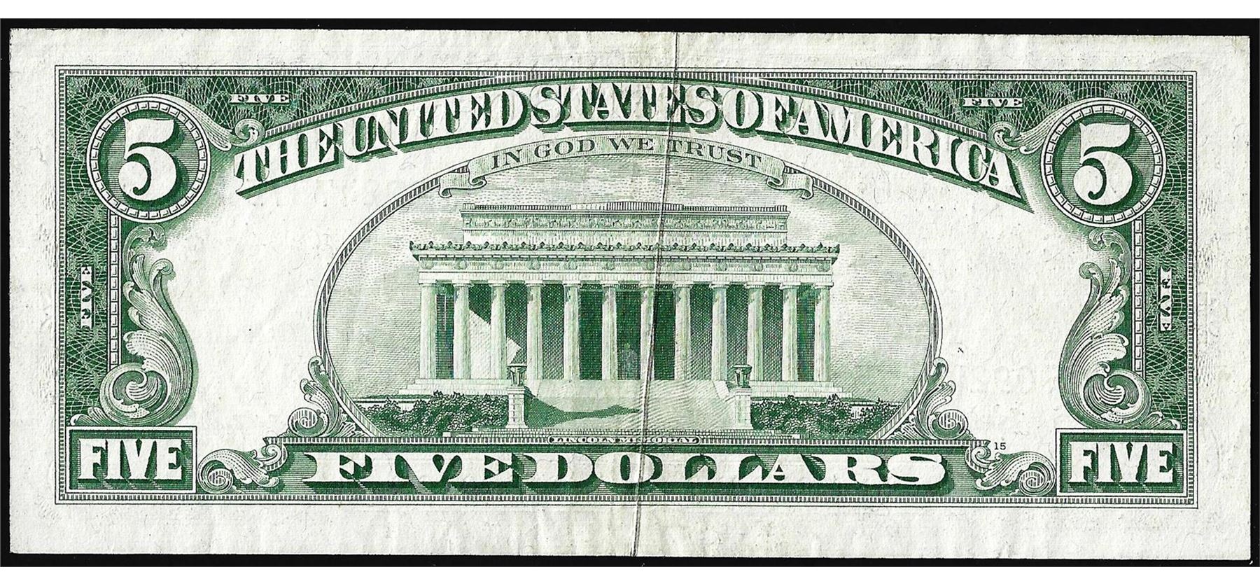 One 1963 $5 Federal Reserve Gutter Fold ERROR Note.