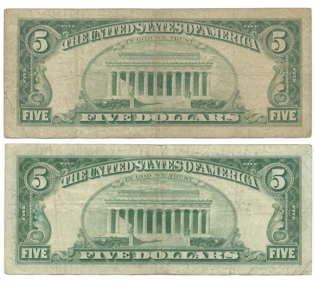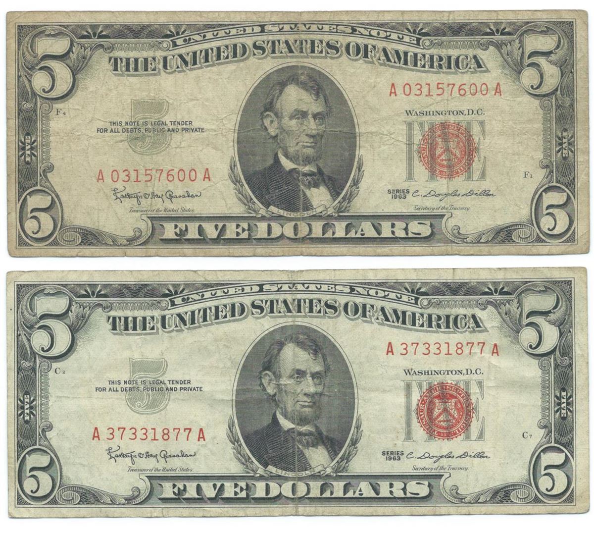One 1963 $5 Fine Red Seal Bill Lot of 2.