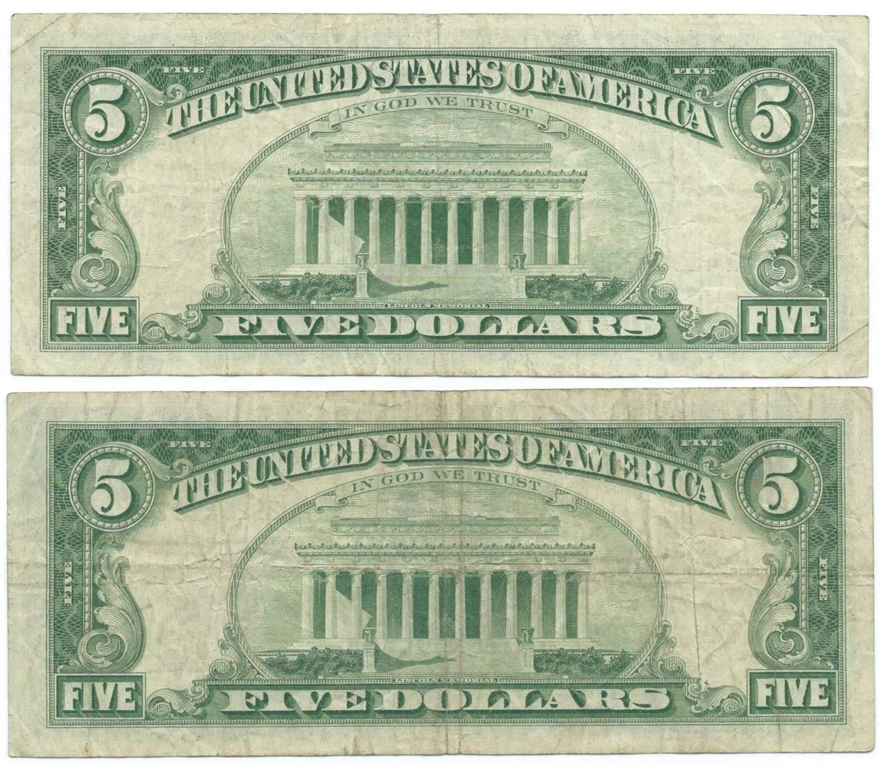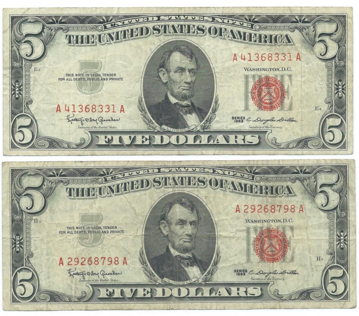 One 1963 $5 Fine Red Seal Bill Lot of 2.