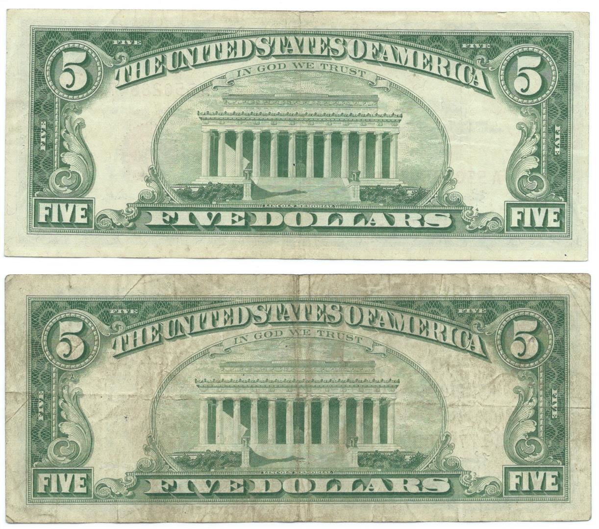 One 1963 $5 Fine Red Seal Bill Lot of 2.