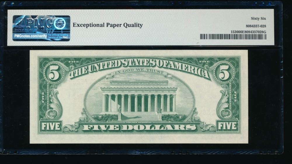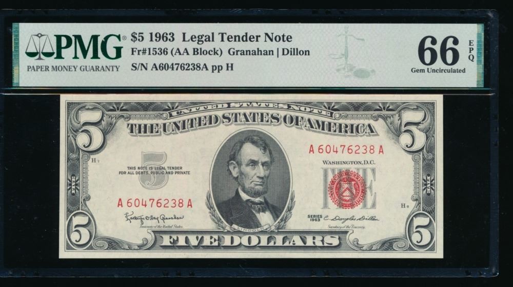 One 1963 $5 Legal Tender Note PMG 66EPQ.
