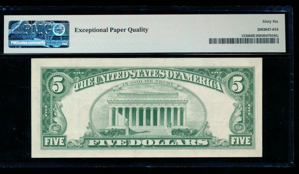 One 1963 $5 Legal Tender Note PMG 66EPQ.