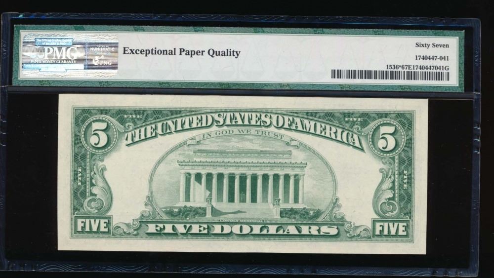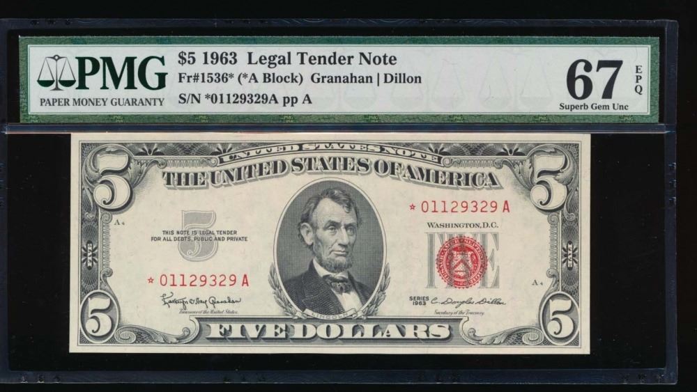 One 1963 $5 Legal Tender Star Note PMG 67EPQ.
