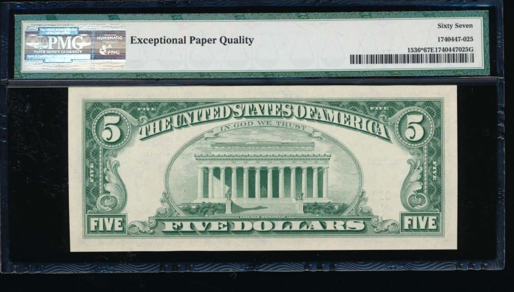 One 1963 $5 Legal Tender Star Note PMG 67EPQ.