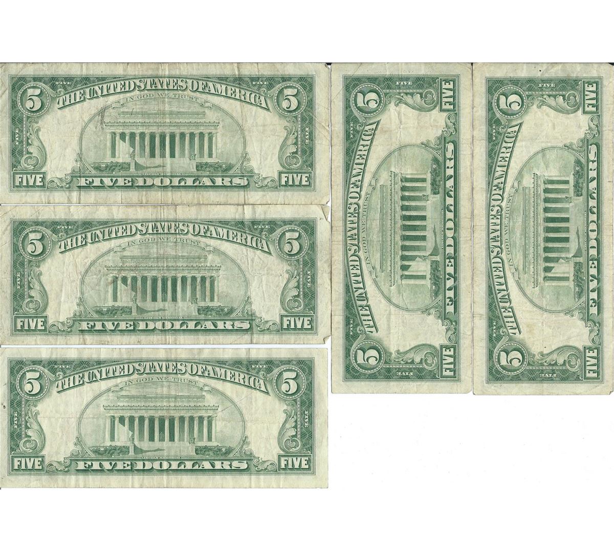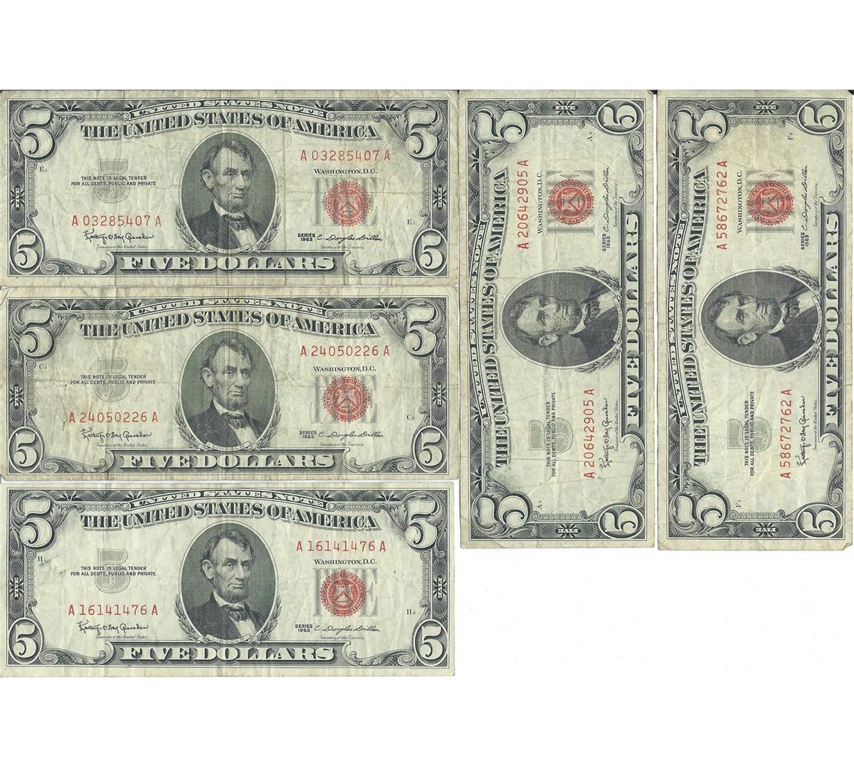 1963 $5 Red Seal Bill Lot of 10.