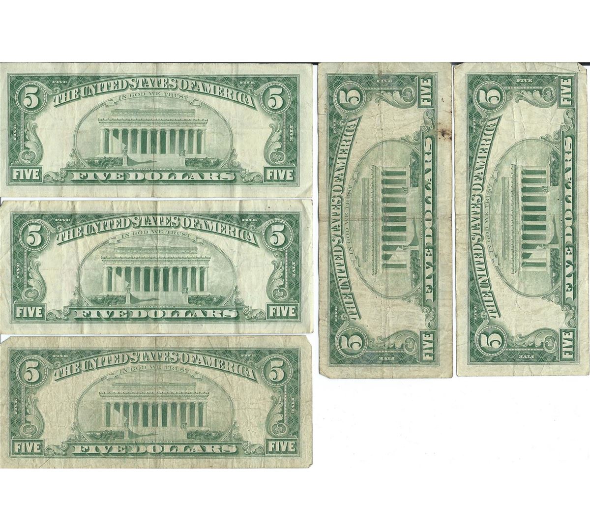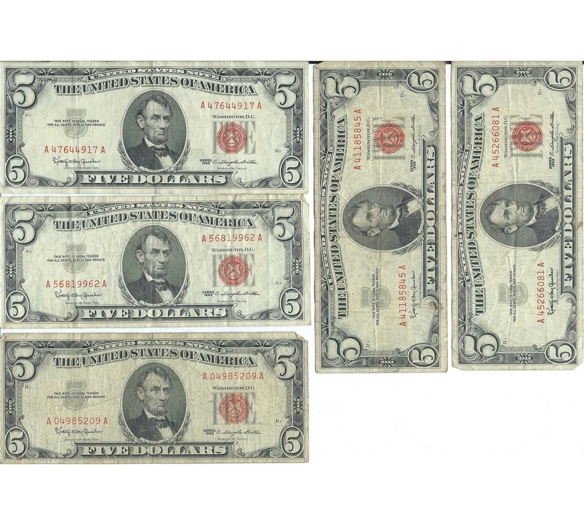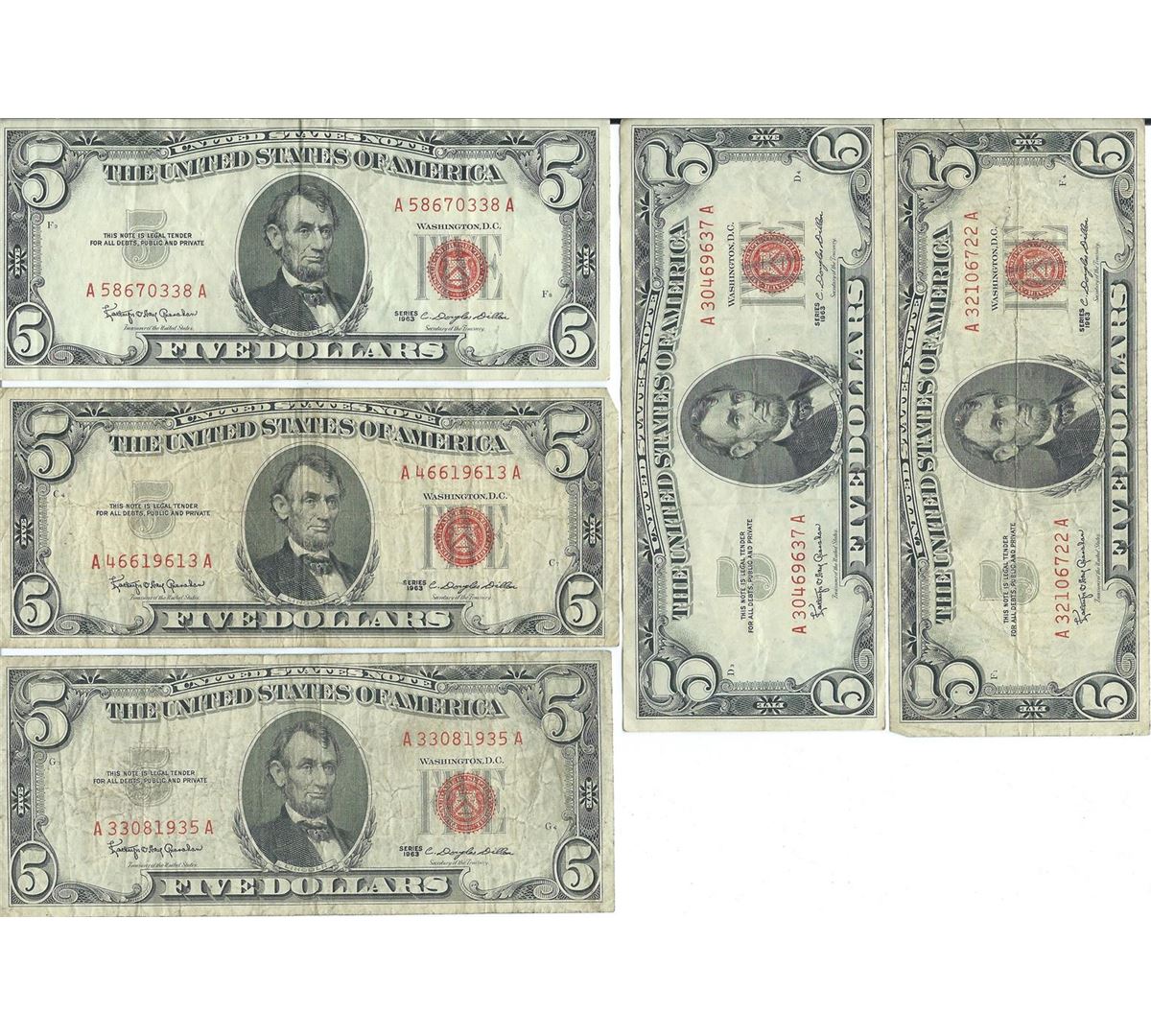 1963 $5 Red Seal Bill Lot of 10.