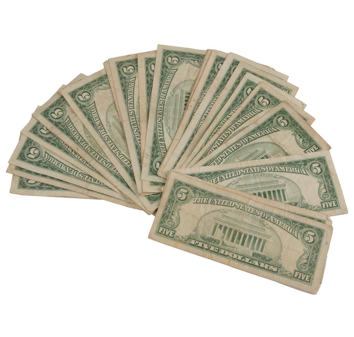 1963 $5 Red Seal Bill Lot of 25.