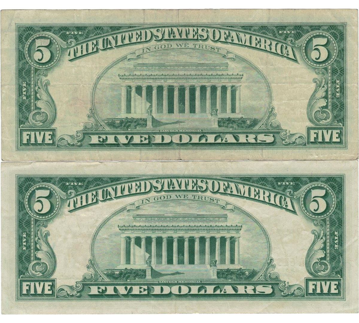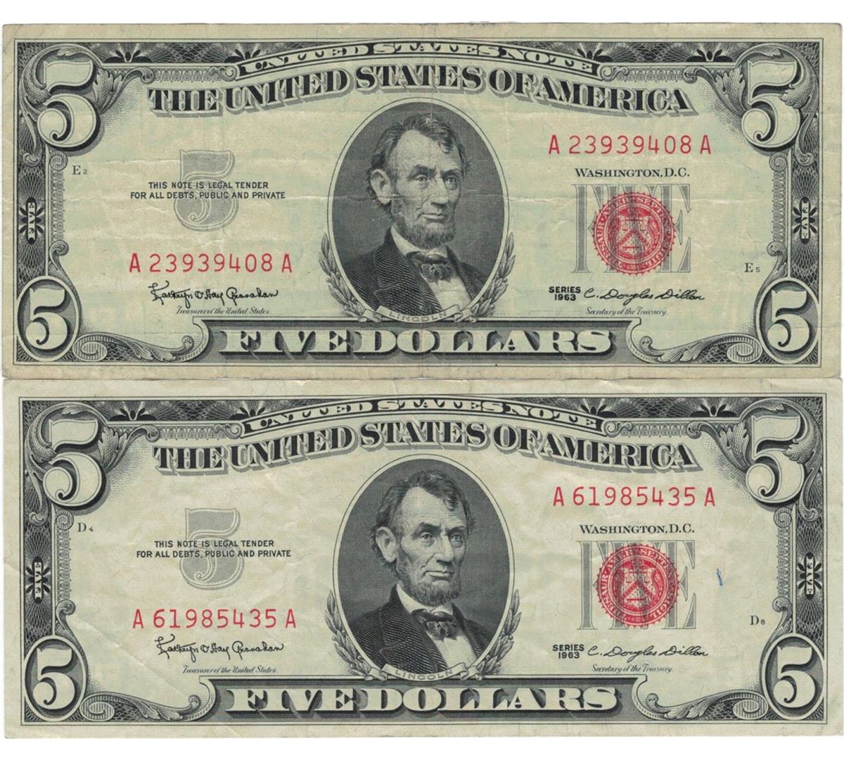 1963 $5 Red Seal Bill Lot of 2.
