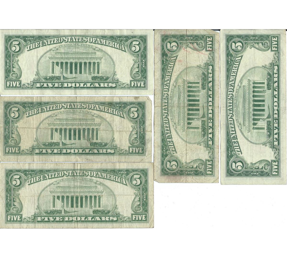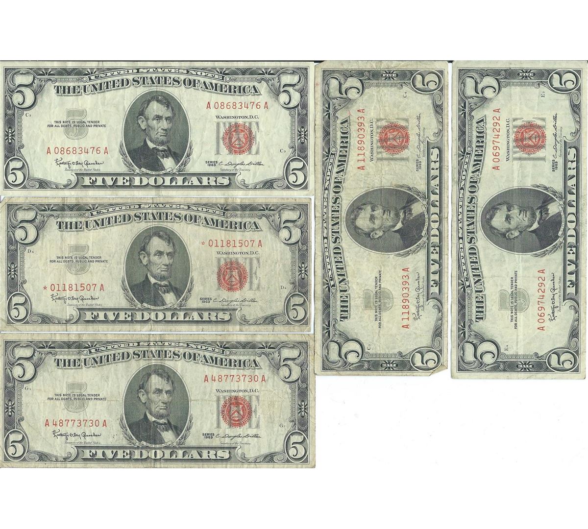 1963 $5 Red Seal Bill Lot of 5.