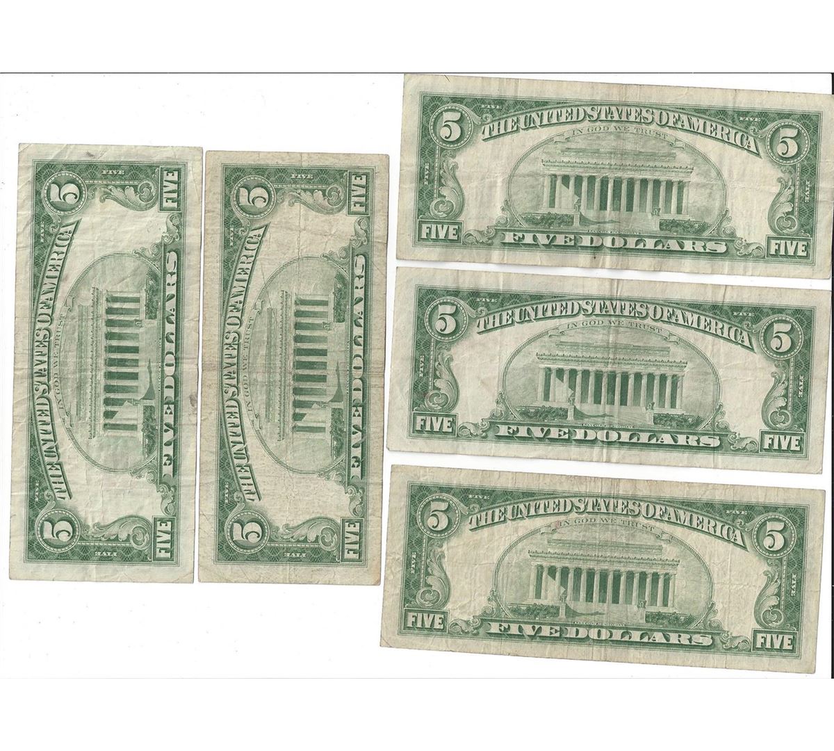 1963 $5 Red Seal Bill Lot of 5.