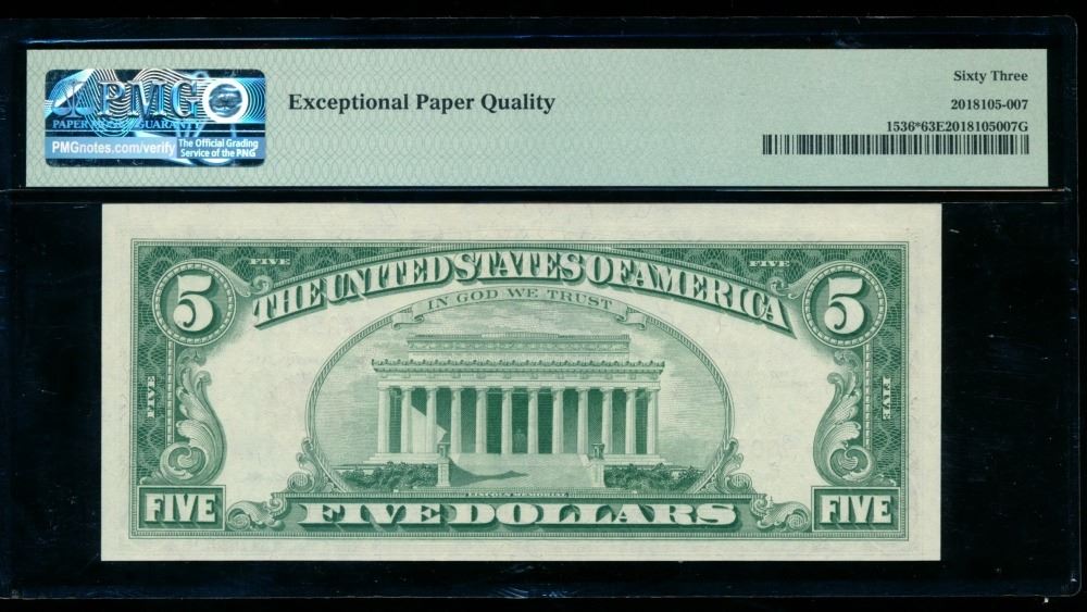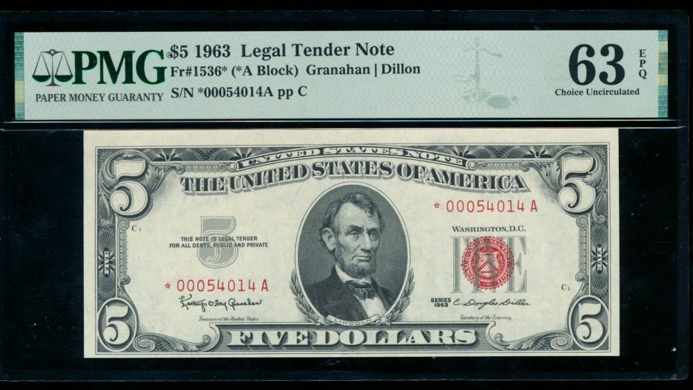 One 1963 $5 STAR Legal Tender Note PMG 63EPQ.