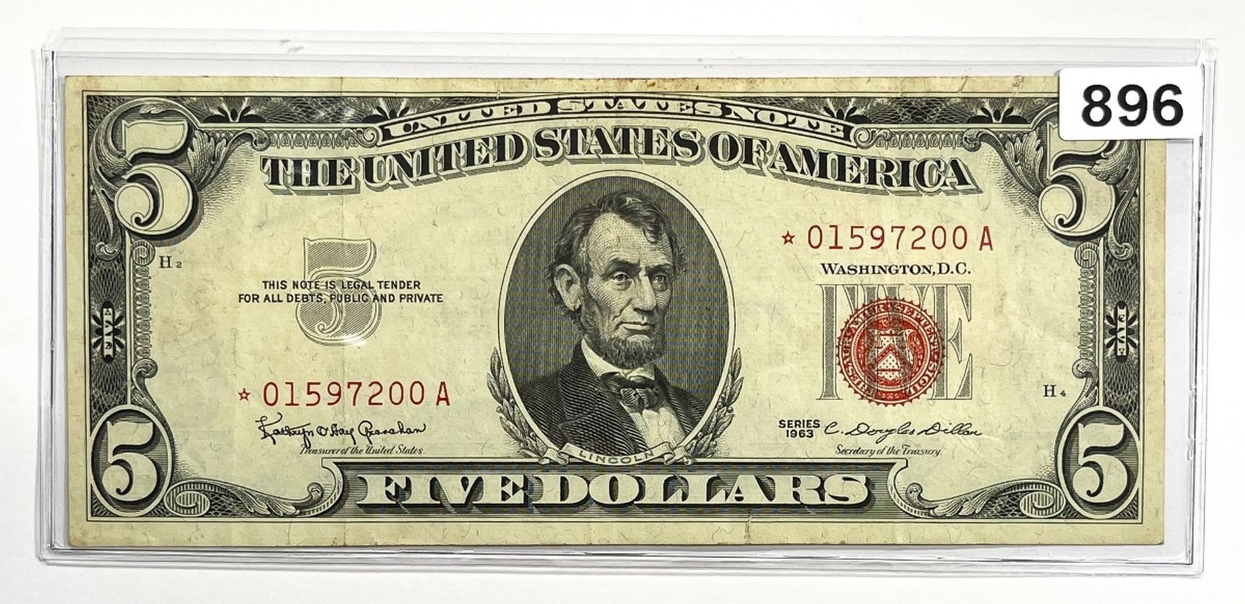 1963 $5 *Star Note Legal Tender Note - CLOSELY UNC