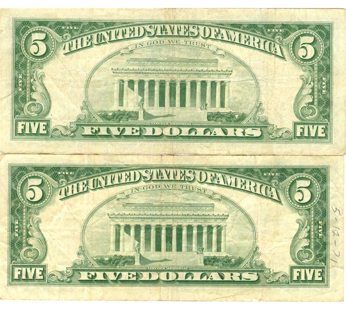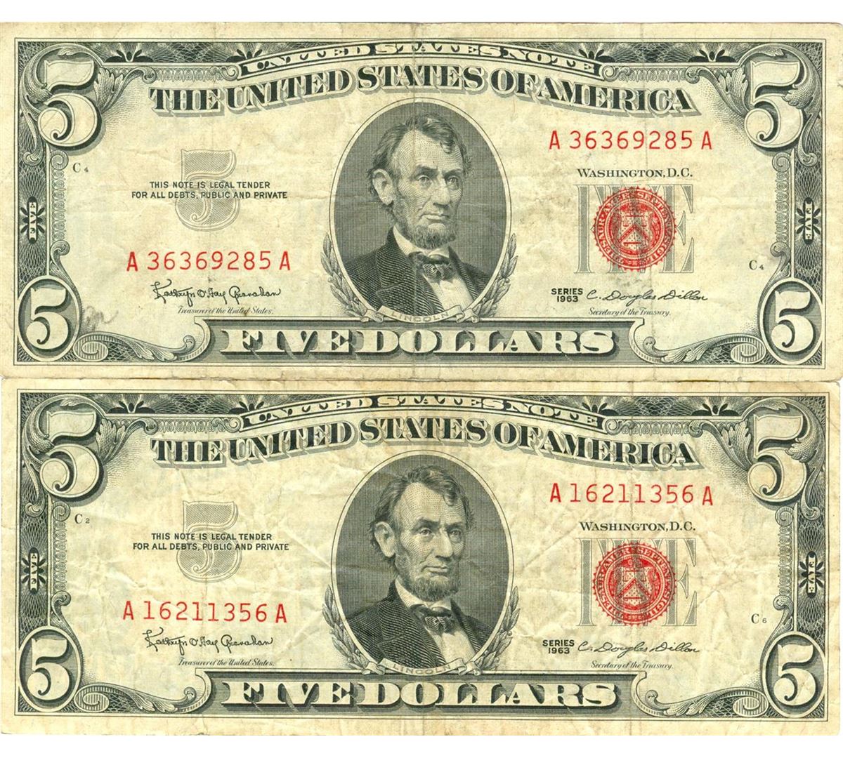 1963 $5 VG/XF Red Seal Note Lot of 2.