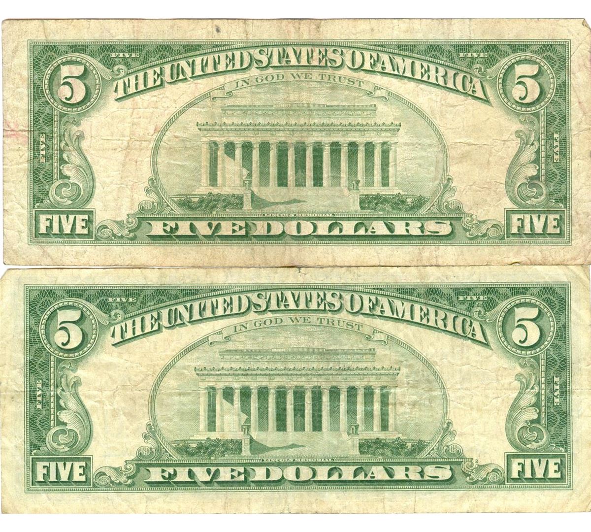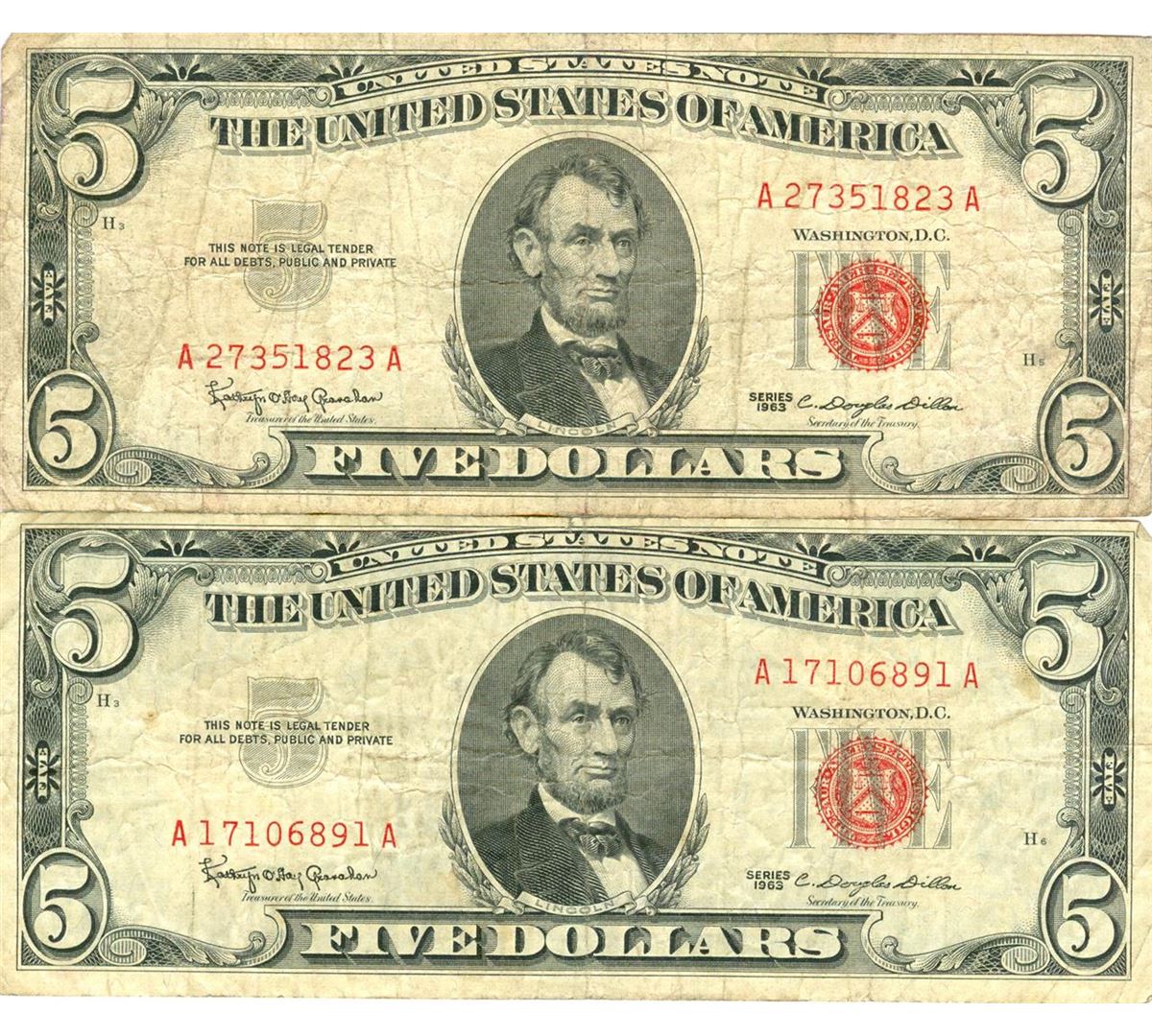 1963 $5 VG/XF Red Seal Note Lot of 2.