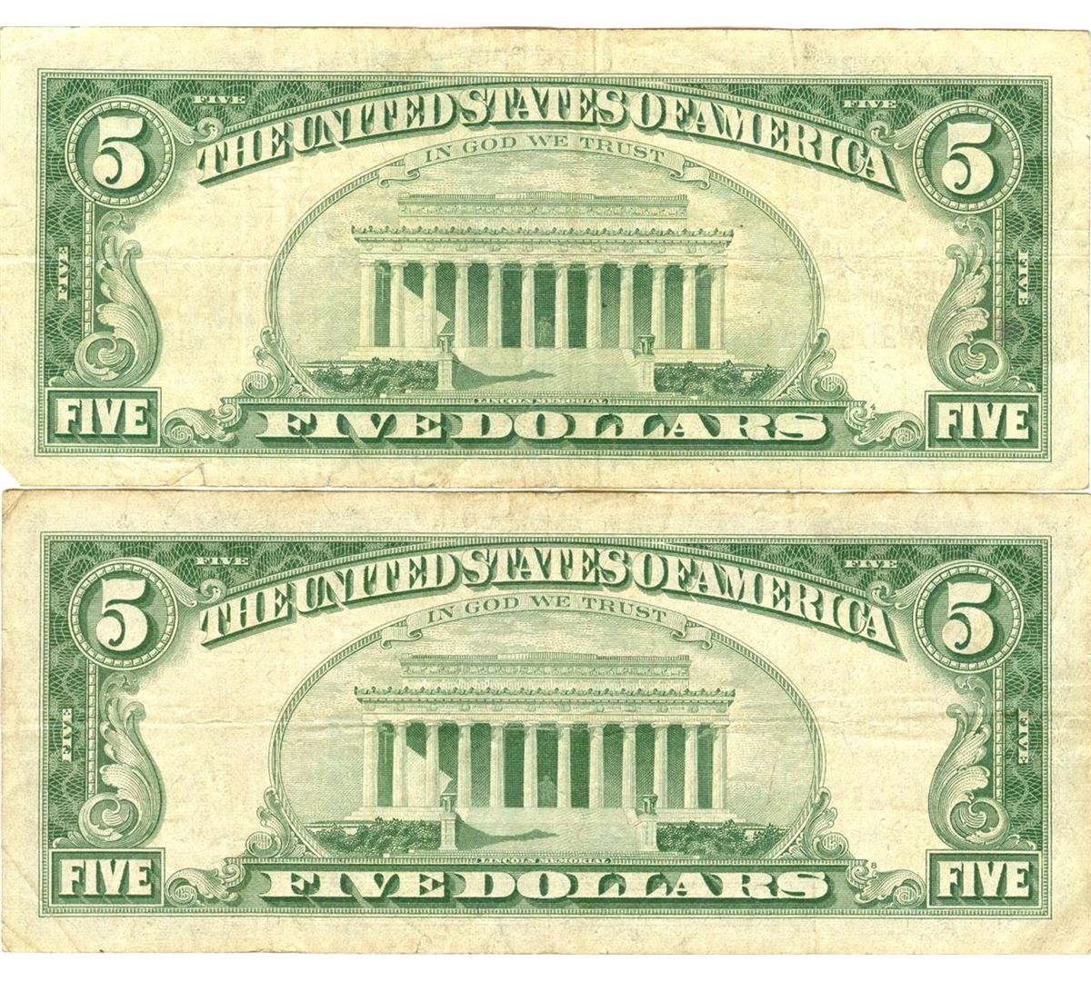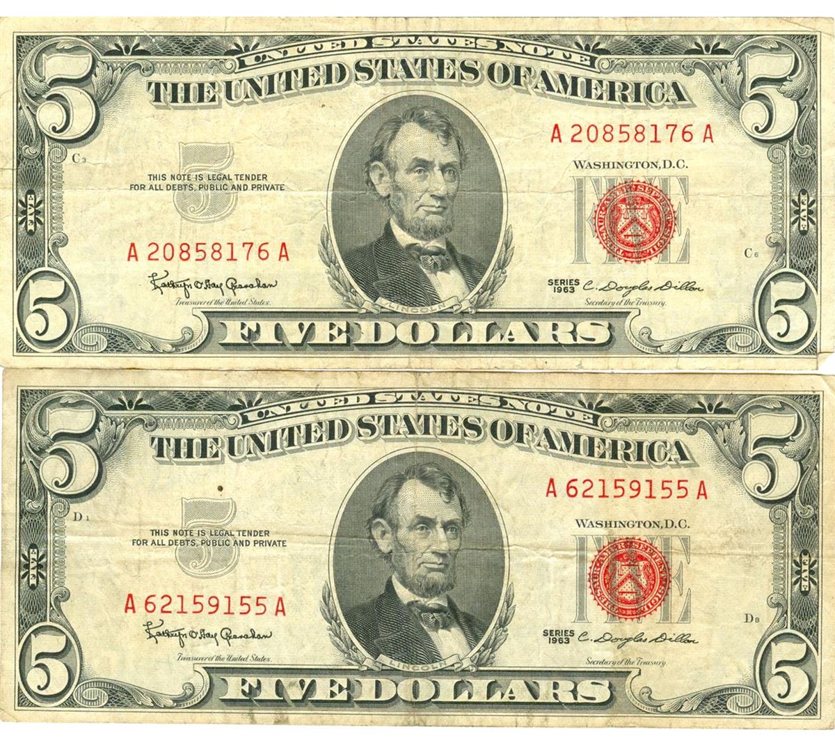 1963 $5 VG/XF Red Seal Note Lot of 2.