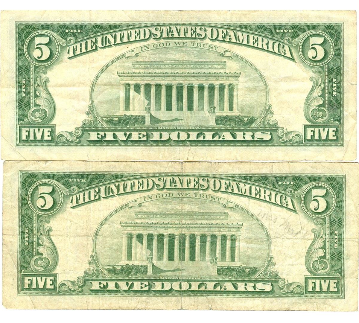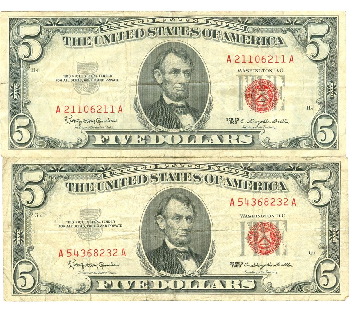 1963 $5 VG/XF Red Seal Note Lot of 2.