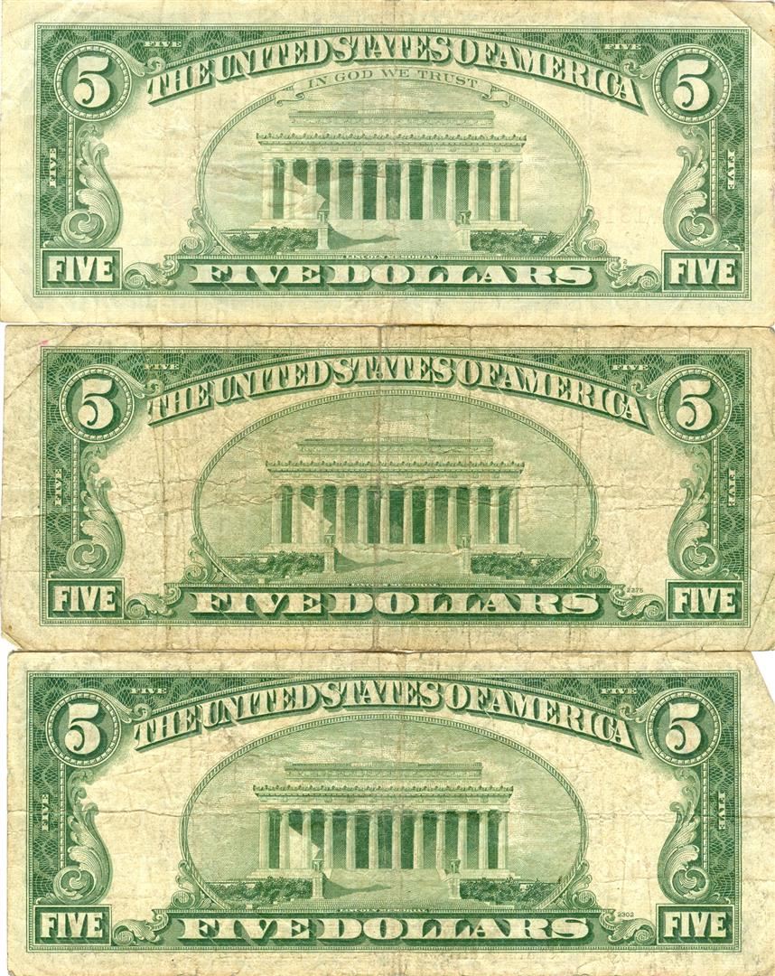 1963 $5 VG/XF Red Seal Note Lot of 3.