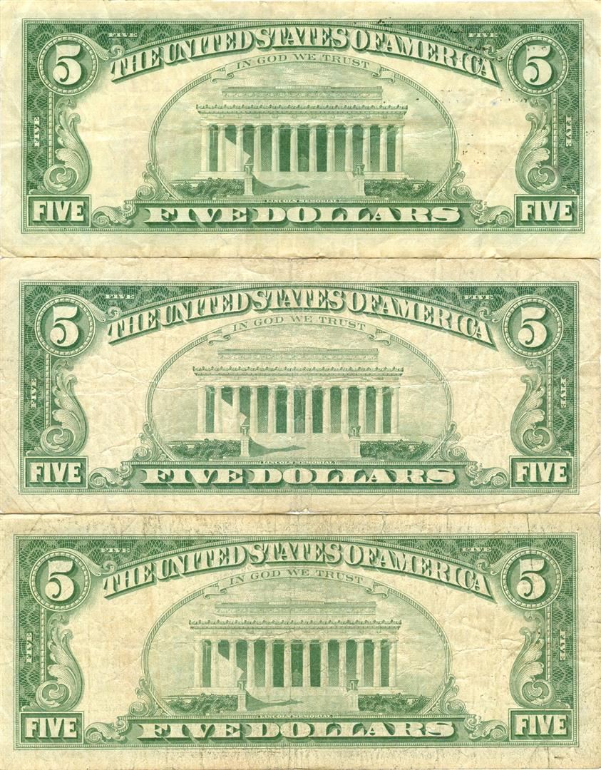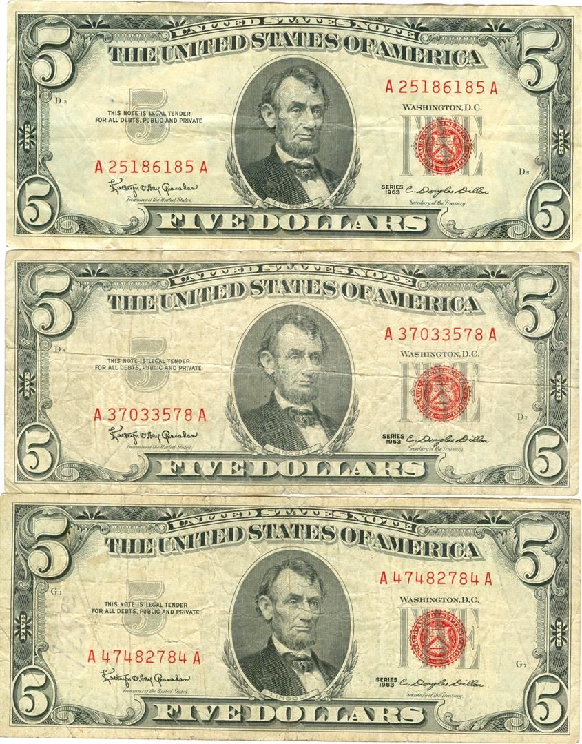 1963 $5 VG/XF Red Seal Note Lot of 3.