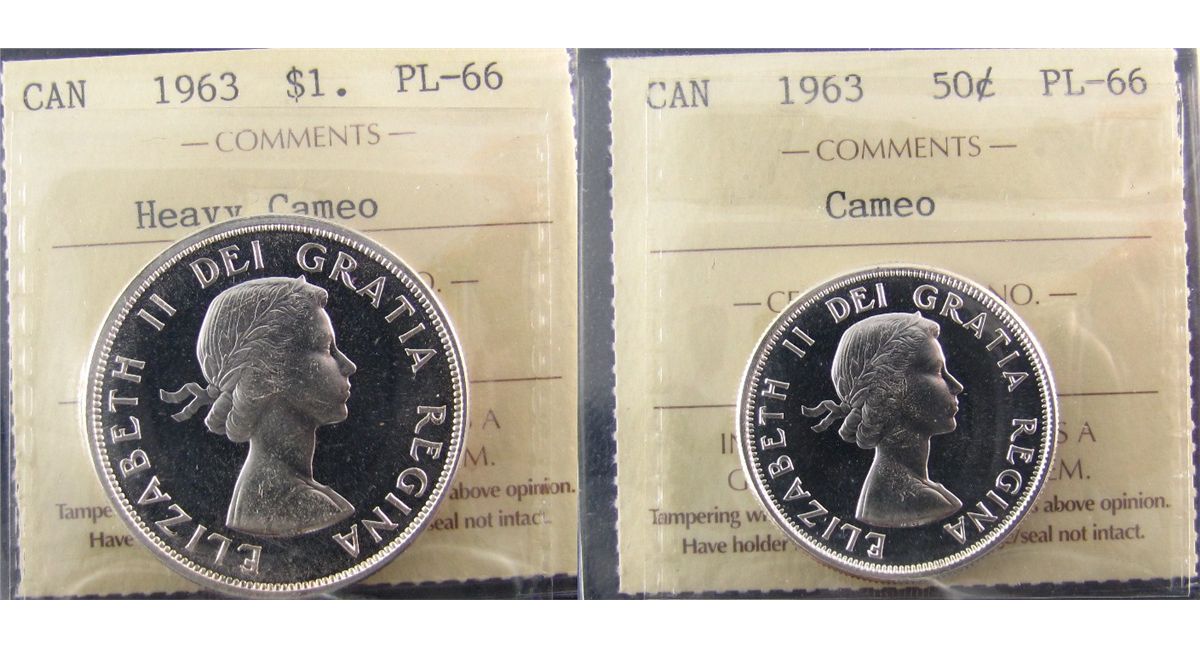 1963 50¢ Cameo & 1963 $1 ICCS Heavy Cameo. Both ICCS PL66.