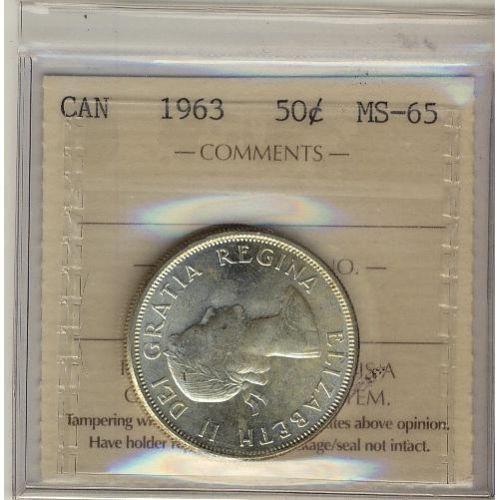 1963 50¢ ICCS MS-65 Brilliant. Excellent strike with clean fields and lovely surfaces. Tied for finest