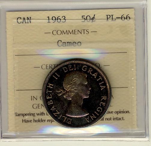 1963 50¢ ICCS PL66 Cameo. Attractive pink and yellow shades.
