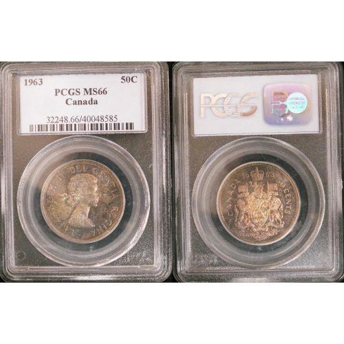 1963 50¢ PCGS MS66, nicely toned. Flashy!