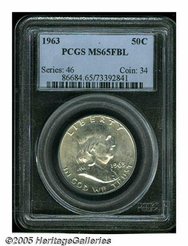 <B>1963<50C> MS65 Full Bell Lines PCGS.</B></I> Appropriately graded and nearly untoned with coruscant luster that radiates around the devices and typically abraded surfaces. A nearly impossible issue to find any nicer.