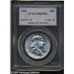 <B>1963 50C MS65 Full Bell Lines PCGS.</B></I> This is a special Gem example with sharp design features. The surfaces are fully brilliant and frosty without toning. It is a bright silver example that will surely please.<BR><I>From The Mike Jacobson Collection.</B></I> Lot:8270