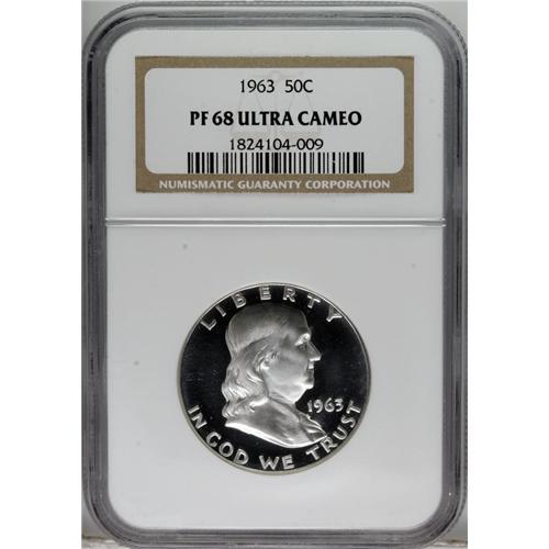 <B>1963 50C PR68 Deep Cameo NGC.</B></I> NGC Census: (153/5). PCGS Population (190/16). Numismedia Wsl. Price: $380. (#96704)<BR><BR><b>Shipping:</b> Coins & Currency (<a target="_blank" href="http://www.heritageauctions.com/common/shipping.php">view shipping information</a>)