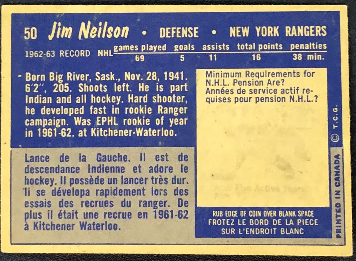 Card #50 NHL, hockey, vintage, OPC, rookie