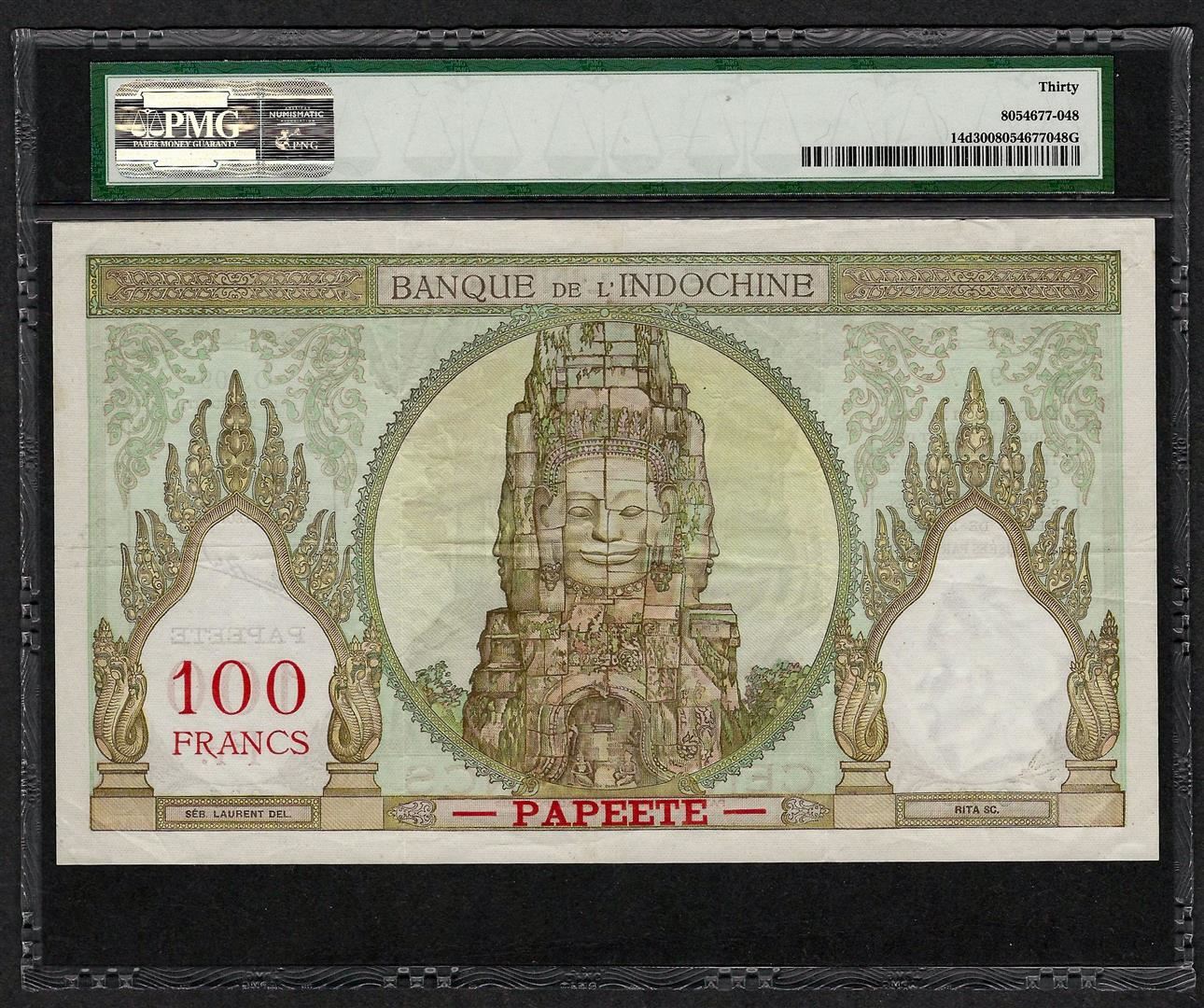 One 1963-65 Banque de l'Indochine Tahiti 100 Francs Note Pick# 14d PMG Very Fine 30. PMG Certified.