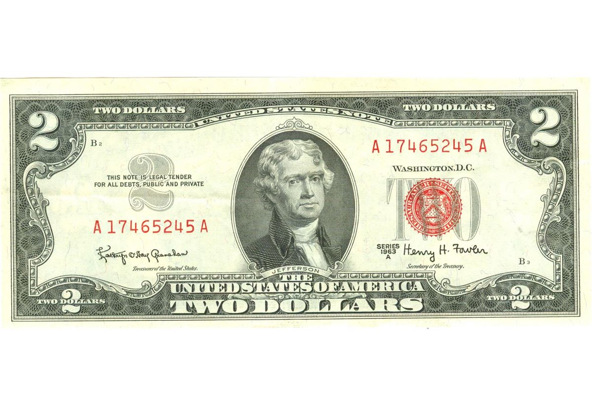 1963-A $2 Choice Circulated Red Seal Note.