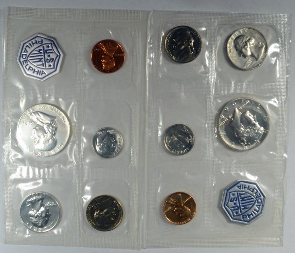 GET THE LAST YEAR OF THE FRANKLIN HALF AND THE FIRST YEAR OF THE KENNEDY HALF DOLLARS, BOTH ARE NICE SETS EST. $60.00 TO $65.00