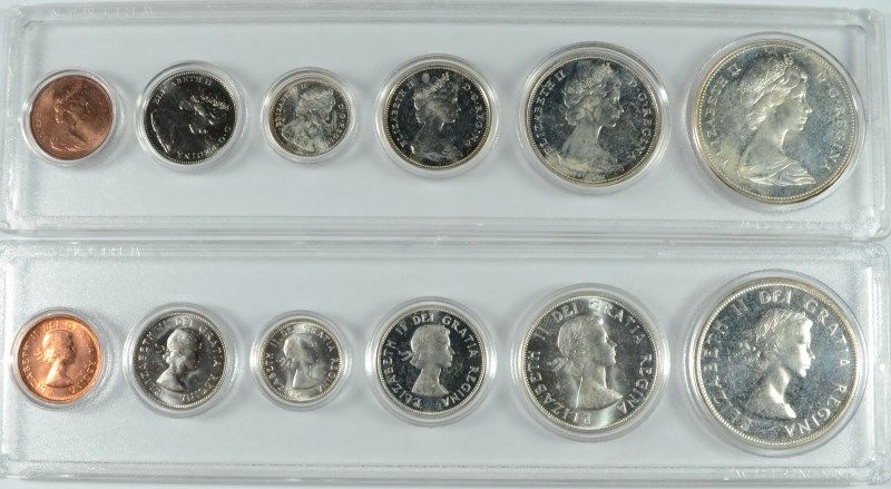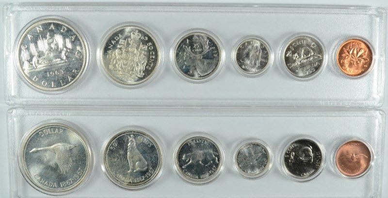1963 AND 1967 COINAGE OF CANADA BU COINS IN PLASTIC, $3.70 FACE VALUE SILVER