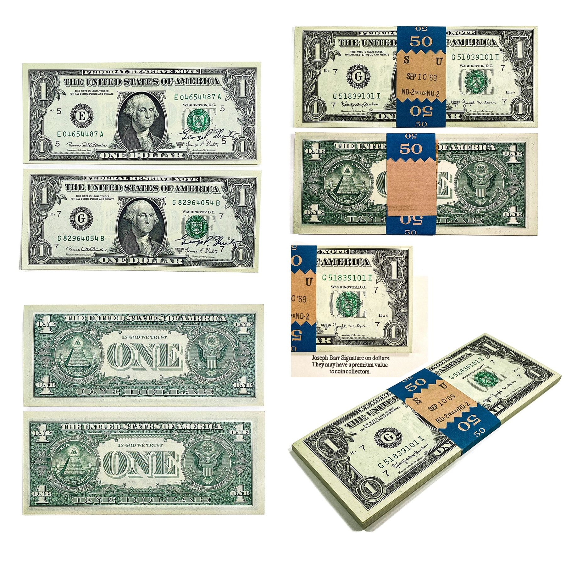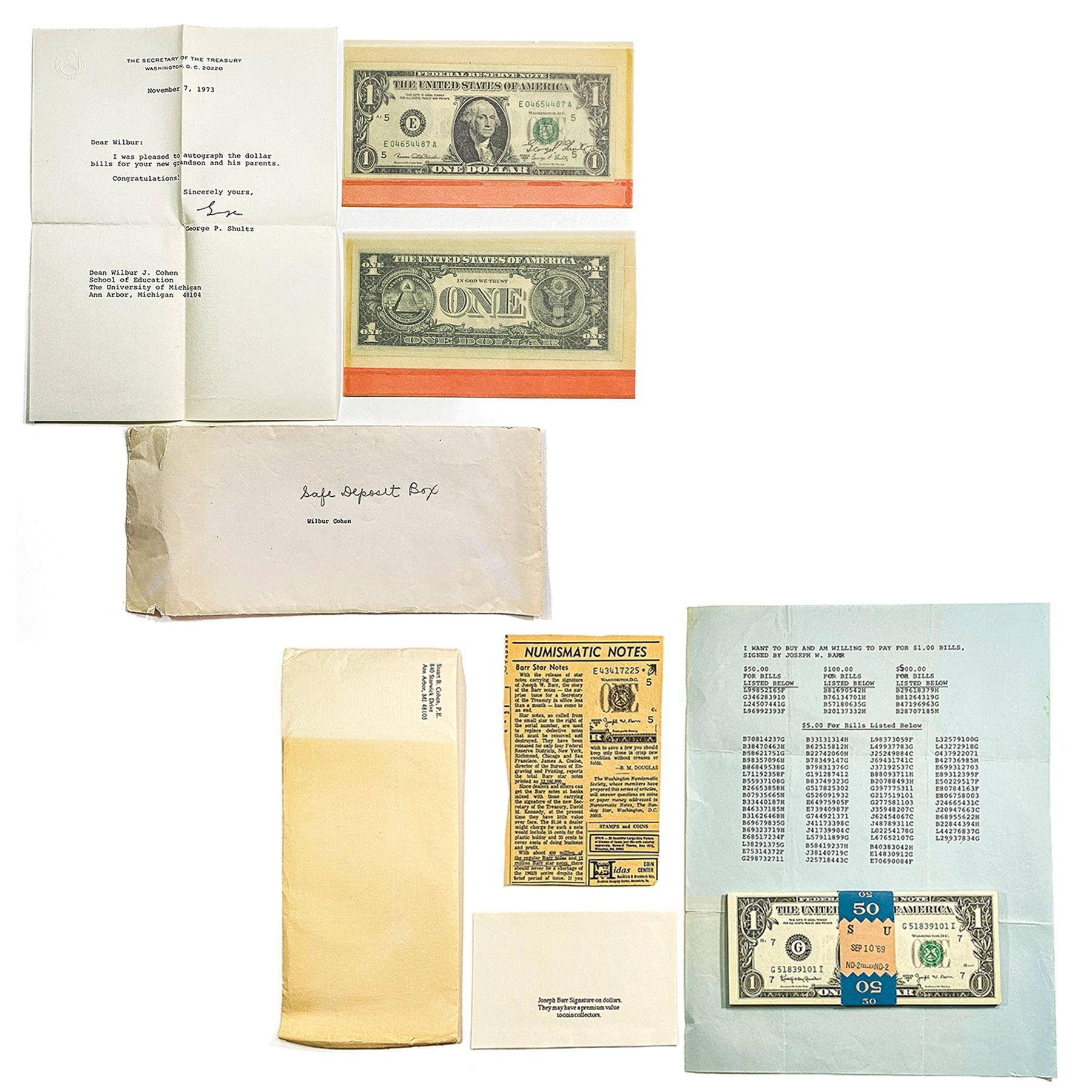 1963 B Josepth Barr Signed $1 Fed Res Notes [64 It