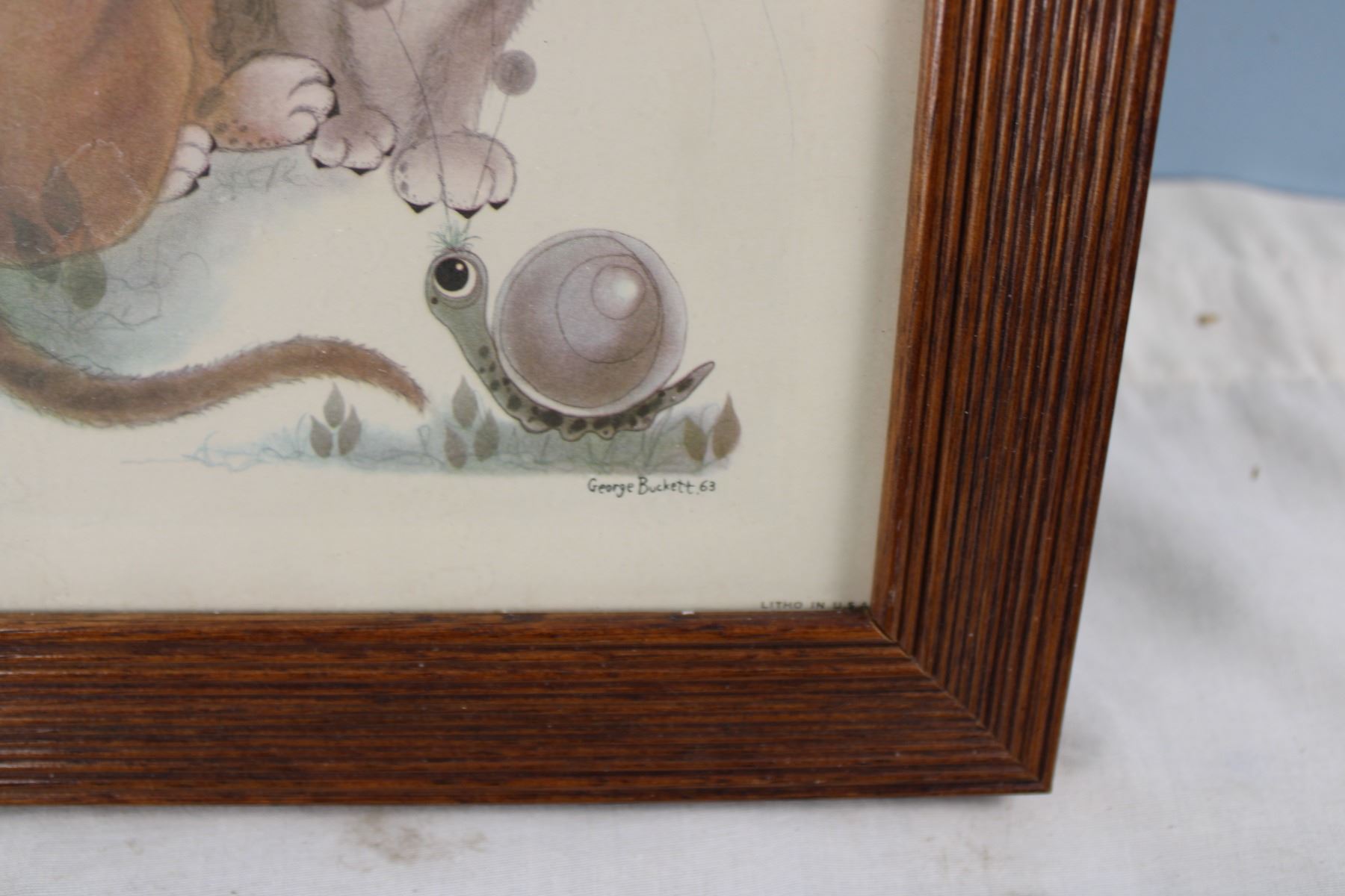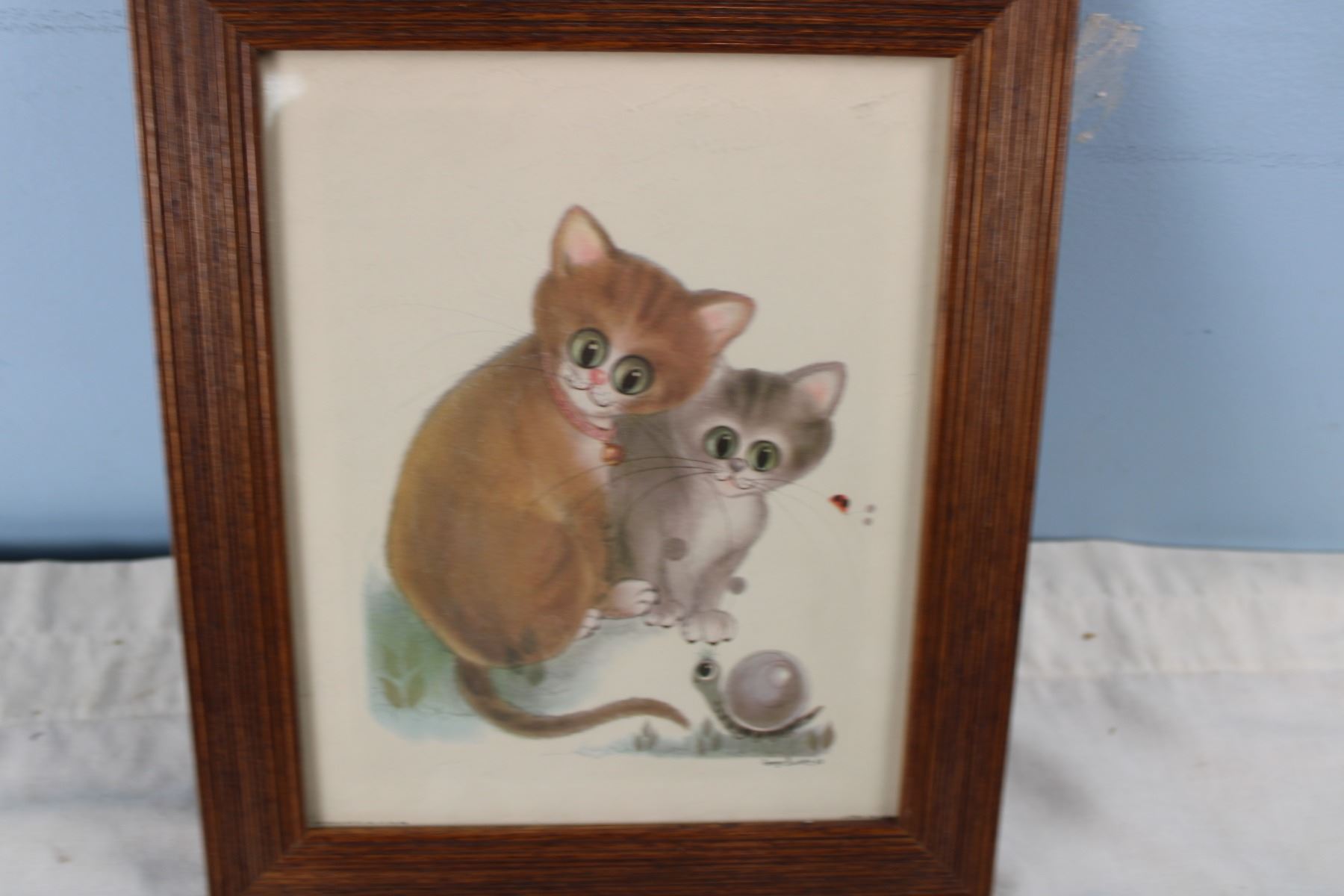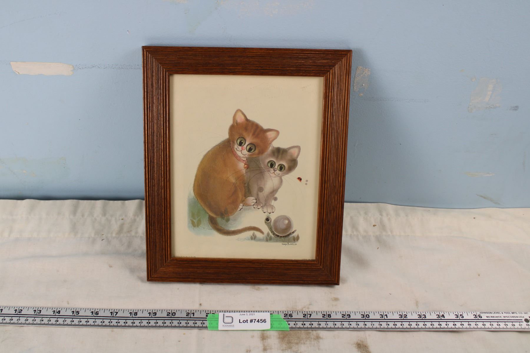 1963 Big Eye Cats Signed G. Buckett Print in Frame (10 1/4" x 12 1/4")